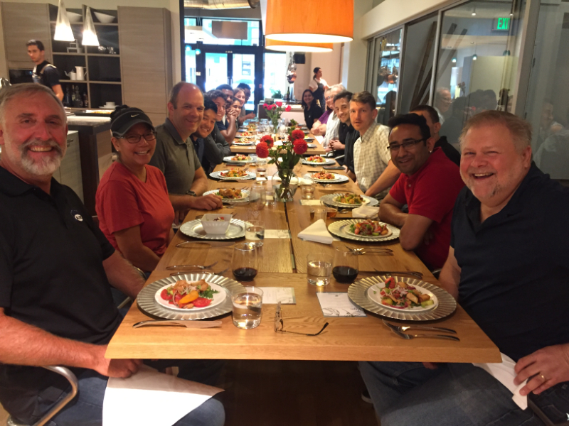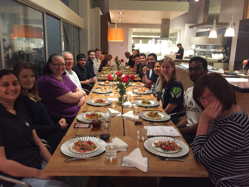 AUE had a great thyme participating in a culinary workshop for our summer corporate gathering! We partnered with Eat Seattle at the SieMatic Kitchen in Seattle where we prepared a Panzenella Salad, Braised Flanken Steak, and a Peach crumble for desert. A few people were a little wary of cooking for the whole team, but with the egg-cellent instruction from the Eat Seattle chefs it was a pizza cake! We had fun meating up with our New York team and hope to ketchup with each other soon!